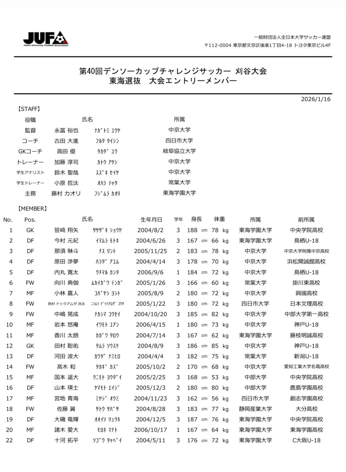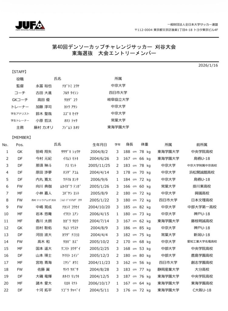 東海選抜の様子は東海学生サッカー連盟公式SNSにて配信予定です。ぜひご覧ください!